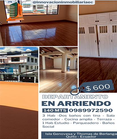 Departamento en Arriendo Norte de Quito, sector Plaza de toros